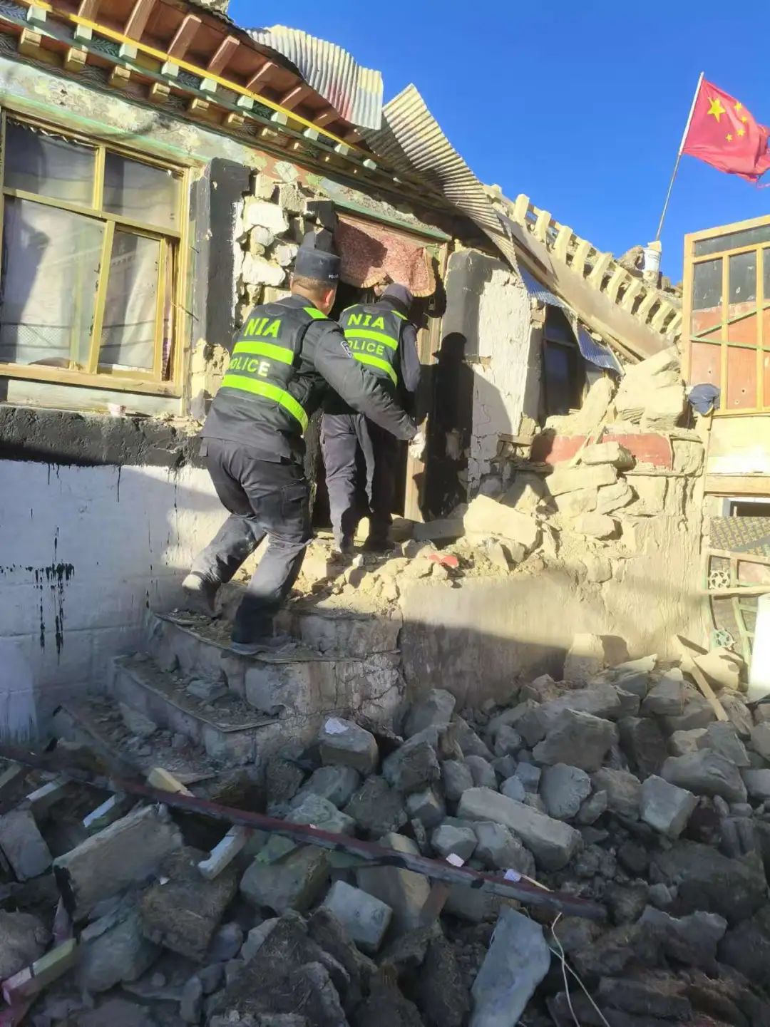 民警在得知情況后,第一時間了解次仁多布杰房屋的受災(zāi)情況,在確認無二次坍塌情況下,請示上級領(lǐng)導(dǎo),經(jīng)同意后,協(xié)調(diào)雜村村委會、雜村安置區(qū)負責(zé)人員前往村民次仁多布杰家里幫助戶主搶救貴重財產(chǎn),18時39分,次仁多布杰屋內(nèi)貴重物品全部轉(zhuǎn)移完畢,救援民警才撤離現(xiàn)場。這仿佛在傳遞著一種無聲的力量:有我們在,別害怕。