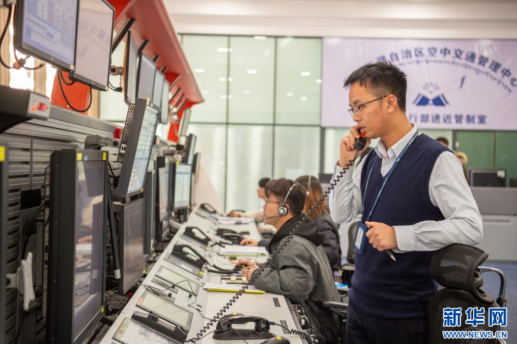 1月14日拍攝的西藏空管中心管制運輸部進(jìn)近管制室。新華網(wǎng) 旦增努布 攝