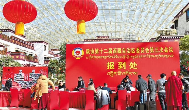 在拉薩圣地天堂洲際大飯店,自治區(qū)政協(xié)委員報(bào)到工作有條不紊進(jìn)行。政協(xié)委員們精神飽滿、激情滿懷地討論各自帶來(lái)的提案。