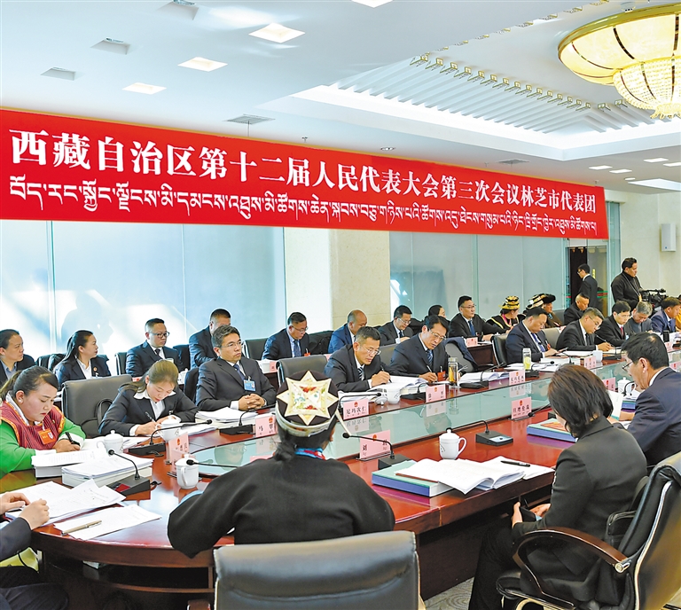 林芝市代表團審議政府工作報告。記者 次仁平措 攝