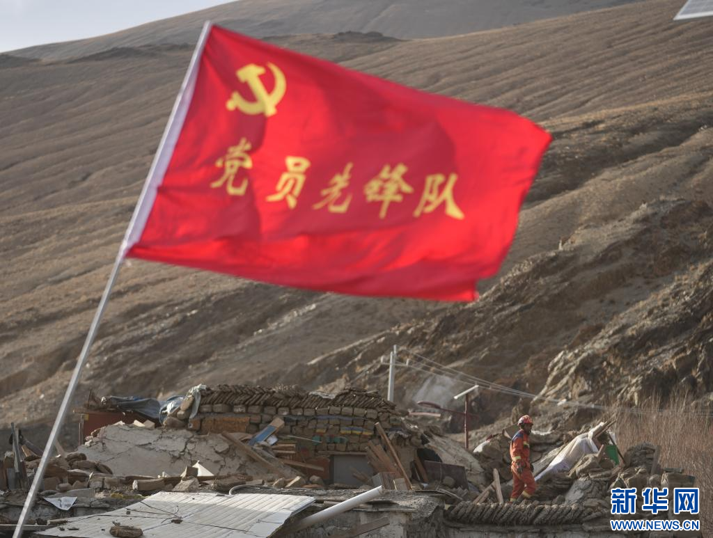 1月7日,一名消防救援人員在尋找生命痕跡。新華社記者 晉美多吉 攝