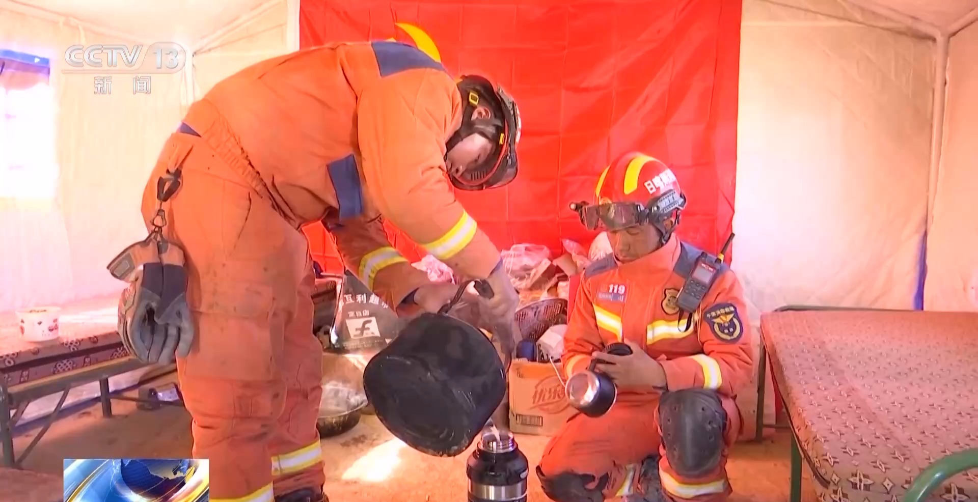 甜茶、藏面、熱牛奶,在這個(gè)臨時(shí)帳篷里,消防員們正在為木隊(duì)村的百姓們制作當(dāng)天的午飯。