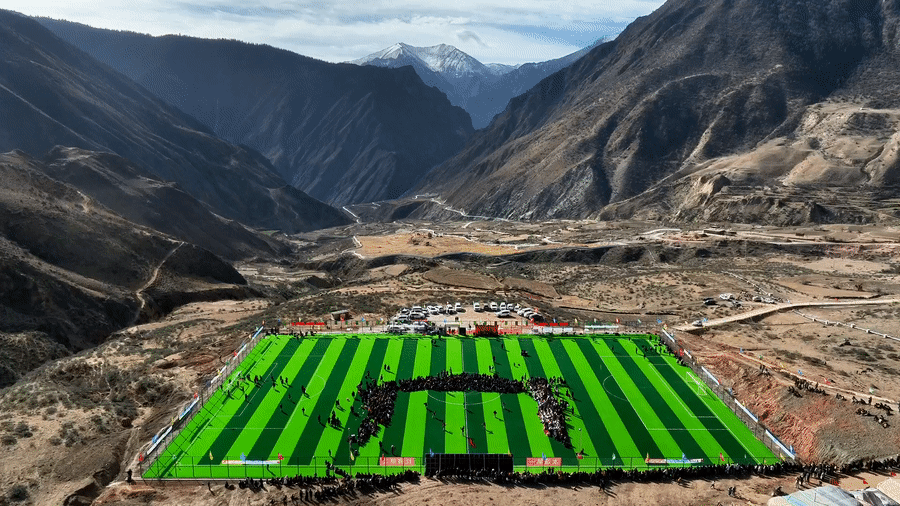 西藏昌都市洛隆縣馬利鎮(zhèn)平均海拔約3700米,高山深谷中,想要找到一片平地實(shí)屬不易,但地形條件沒(méi)有阻擋當(dāng)?shù)厝藢?duì)足球的熱愛(ài)。