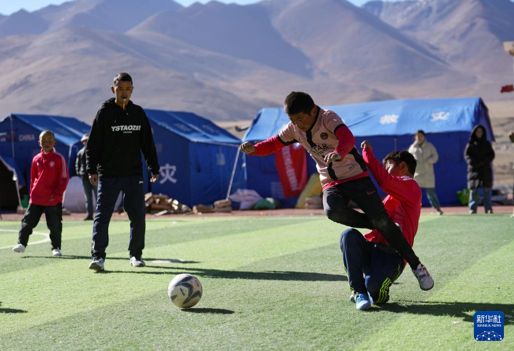 1月26日,在定日縣曲洛鄉(xiāng)完全小學操場上,長所鄉(xiāng)嘎旦村和曲洛鄉(xiāng)措昂村的孩子們在進行足球比賽。新華社記者 晉美多吉 攝
