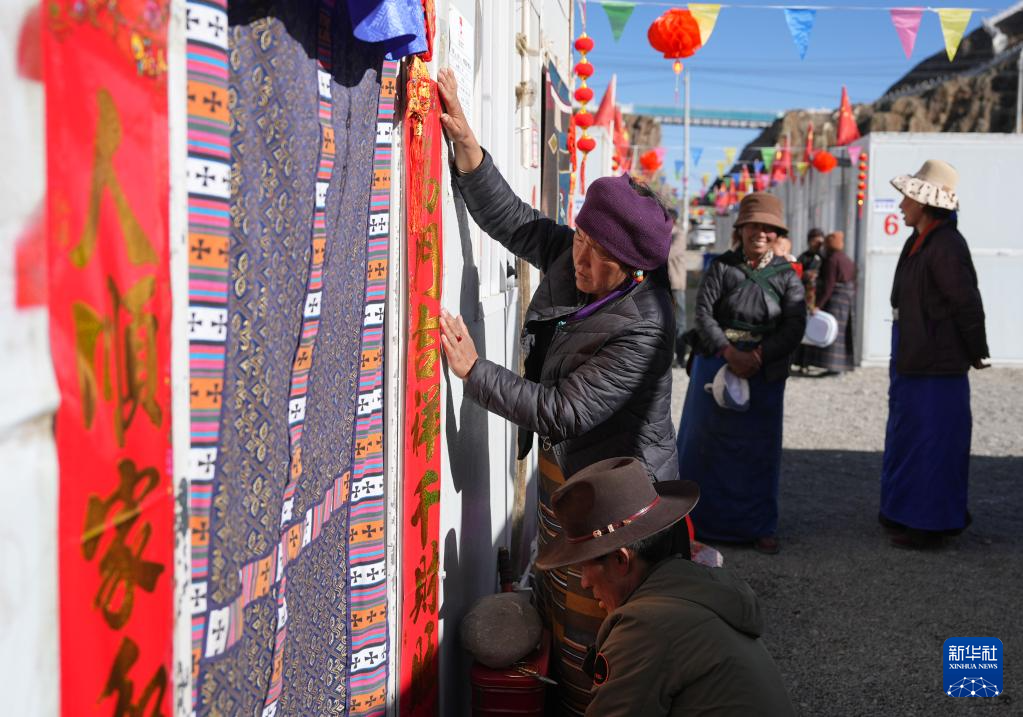 1月26日,拉孜縣吉如村安置點群眾在掛吉祥結(jié)。新華社記者 晉美多吉 攝