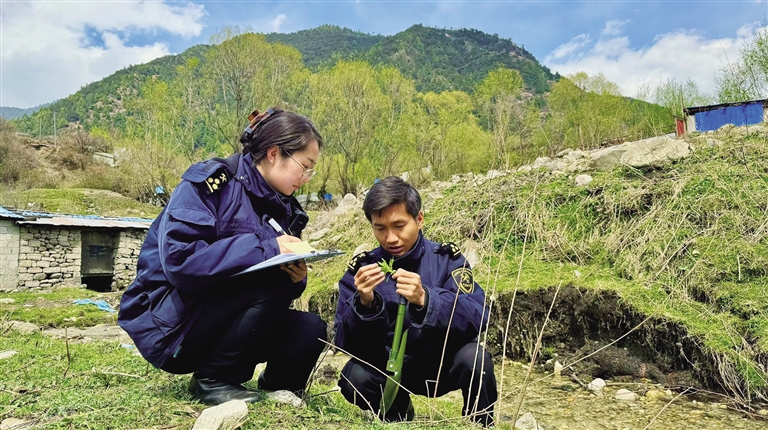 拉薩海關(guān)所屬吉隆海關(guān)關(guān)員開展國門生物安全監(jiān)測。圖由拉薩海關(guān)提供