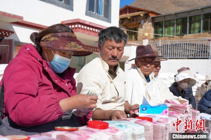 圖為西藏左貢縣亞中村農(nóng)牧民分紅現(xiàn)場。普布朗杰 攝