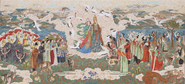 西藏的年畫起步較晚,但此次展覽卻給這一傳統(tǒng)藝術(shù)帶來(lái)了全新的發(fā)展契機(jī)。“新生活·新風(fēng)尚·新年畫”展覽負(fù)責(zé)人扎西諾布介紹,展覽共展出近100幅作品,來(lái)自97位藝術(shù)家。不同地域的風(fēng)格在這方展廳中碰撞、交融,江南水鄉(xiāng)的溫婉細(xì)膩、巴蜀大地的熱情奔放、湘楚文化的靈動(dòng)飄逸、青藏高原的粗獷豪邁,都通過(guò)一幅幅年畫展現(xiàn)得淋漓盡致。