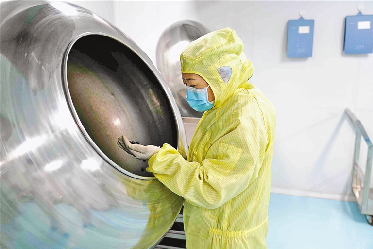 走進(jìn)西藏甘露藏醫(yī)藥產(chǎn)業(yè)集團(tuán)有限公司生產(chǎn)車間,伴隨制丸間轟隆的機(jī)器聲,次仁措姆將藥粉均勻撒在機(jī)器內(nèi)部,再抓起一把藥丸查看上粉狀態(tài)。次仁措姆是公司生產(chǎn)車間主任,也是一名全國人大代表。
