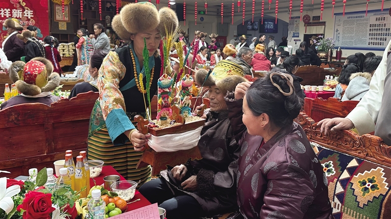 拉薩市社會福利院工作人員白央告訴記者,藏歷新年前一周,她們就為老人們洗澡、修剪指甲,對福利院進(jìn)行全面大掃除。為營造節(jié)日氛圍,還提前為老人裝扮居住環(huán)境,掛上紅燈籠,擺上切瑪盒等。“這是我在福利院工作的第二年。藏歷新年雖不能陪伴在父母身邊,但與老人們一同過年,讓我深感幸福且意義重大?!?/p>