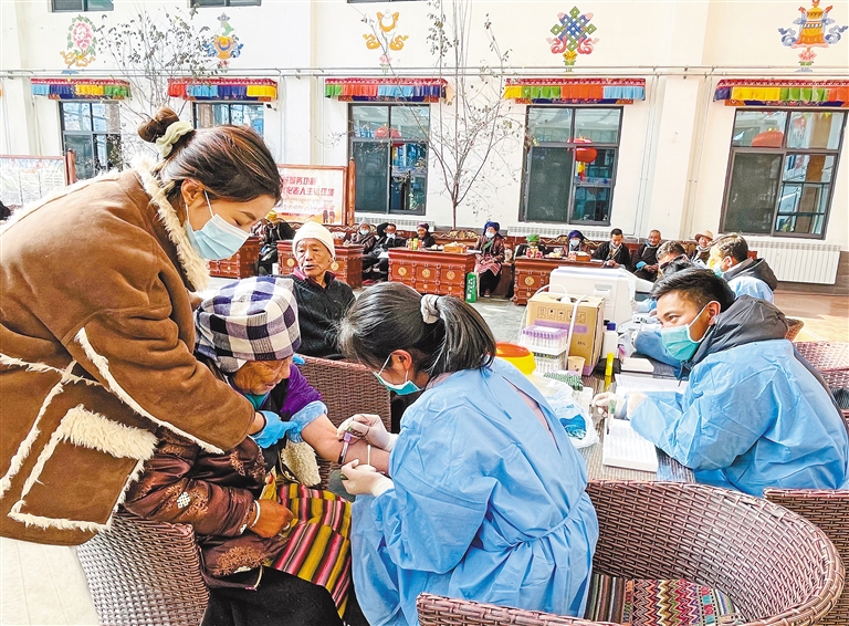 近日,浪卡子縣中心人民醫(yī)院醫(yī)療團(tuán)隊(duì)開(kāi)展免費(fèi)體檢公益活動(dòng),為浪卡子縣五保戶(hù)集中供養(yǎng)中心的特困人員送去關(guān)懷。