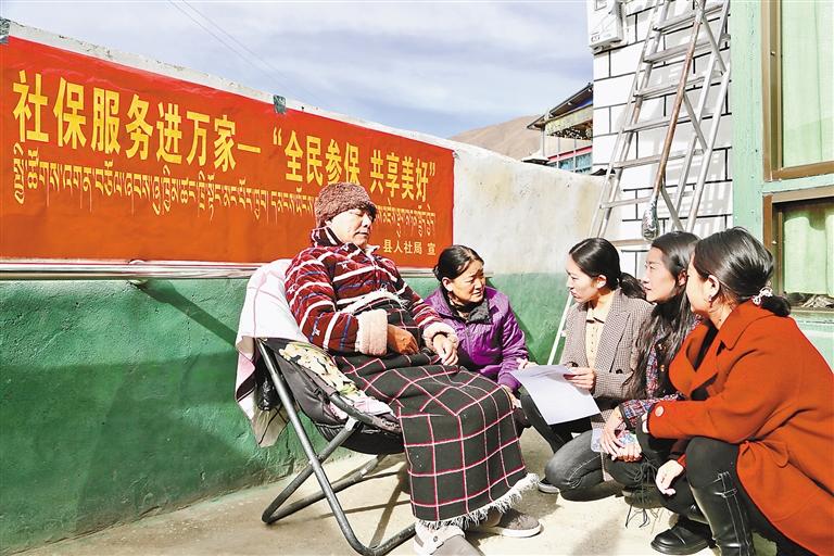 山南市瓊結(jié)縣人力資源和社會(huì)保障局工作人員入戶辦理養(yǎng)老保險(xiǎn)待遇資格認(rèn)證。