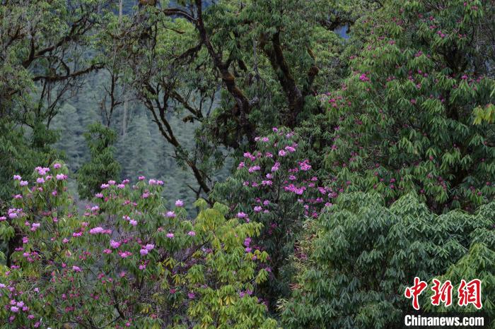 4月3日,西藏自治區(qū)林芝市波密縣野生杜鵑盛放,漫山遍野,匯成夢幻花海。這里品種多樣,有波密杜鵑、淡鐘杜鵑等?;ǘ渖世_紛,粉紅嬌俏、玫紅熱烈、朱紅明艷、淺紫神秘。它們廣泛分布于山坡、河谷、森林,與雪山、溪流相互映襯,勾勒出絢麗的春日盛景 。中新社記者 貢嘎來松 攝