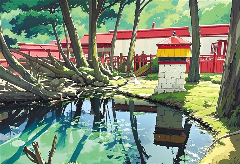 三個放學(xué)歸來的孩子蹲在石板邊,用泉水沖洗沾滿泥土的手,水珠順著手指滴落時,忽然有斑頭雁群掠過泉面上空。他們屏息凝望的瞬間,宮崎駿動畫中常見的“萬物有”氣息,正從濕地里蒸騰的水霧中悄然漫出。