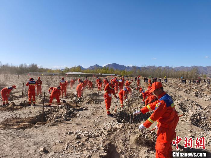圖為日喀則市森林消防大隊義務植樹活動現(xiàn)場。洛桑頓珠 攝