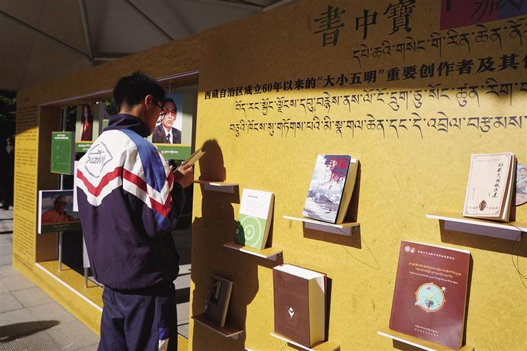 拉薩某學(xué)校學(xué)生在活動(dòng)現(xiàn)場(chǎng)閱讀書(shū)籍。記者 余書(shū)冉