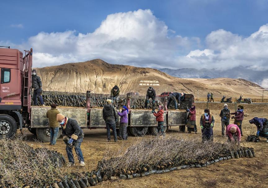 作品簡介:(作者自述)拍攝于2023年5月,日喀則市定日縣曲洛鄉(xiāng)卸沙棘樹苗。