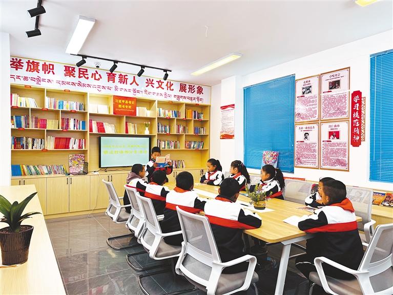 圖為孩子們在胡達村農(nóng)家書屋分享閱讀心得。記者 扎西頓珠 攝