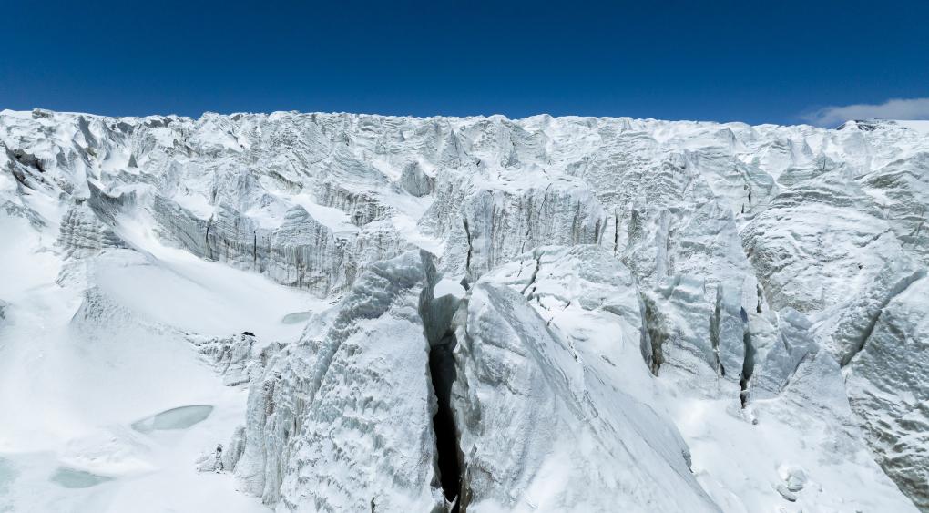 這是那曲市羌塘無(wú)人區(qū)內(nèi)的藏色崗日冰川(無(wú)人機(jī)照片,2024年5月11日攝)。新華社記者 丁增尼達(dá) 攝