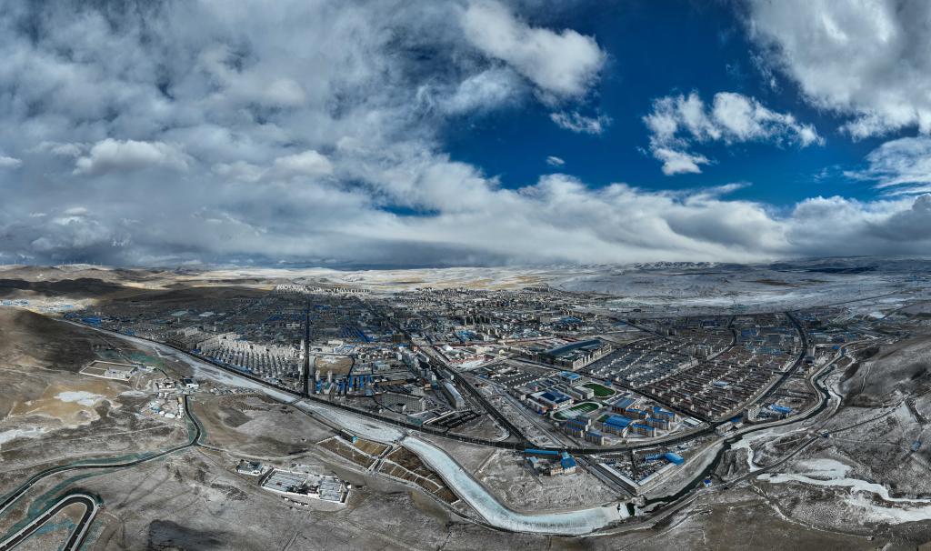 這是2月12日拍攝的那曲城區(qū)(無(wú)人機(jī)照片)。鳥瞰這座“云端之城”,一派蒼茫壯闊景象。新華社記者 晉美多吉 攝