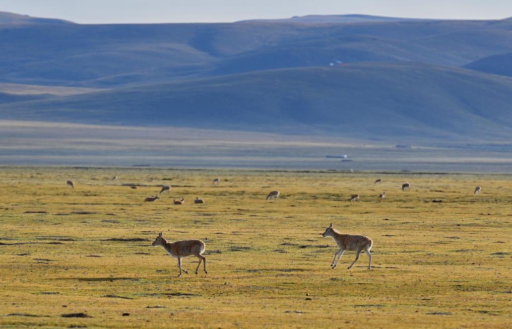 色林錯(cuò)國(guó)家級(jí)自然保護(hù)區(qū)那曲市申扎縣片區(qū)里的藏羚羊(2024年8月26日攝)。新華社記者 張汝鋒 攝