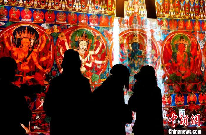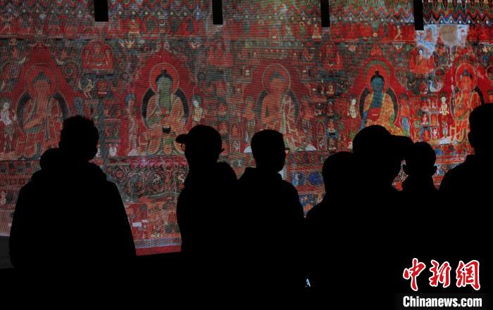 5月18日是第49個國際博物館日,今年的主題是“快速變化社會中的博物館未來”,西藏博物館迎來參觀熱潮。圖為觀眾在西藏博物館內(nèi)欣賞阿里古格經(jīng)典壁畫數(shù)字化成果展。中新社記者 李林 攝