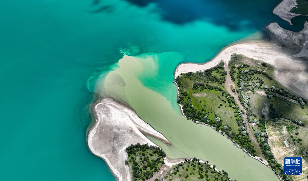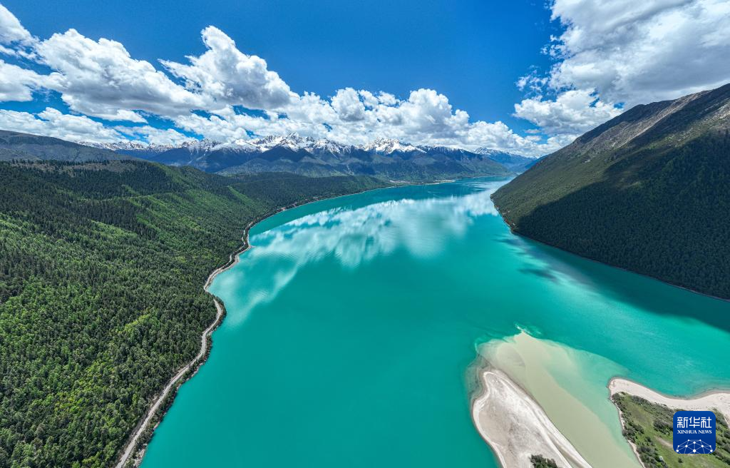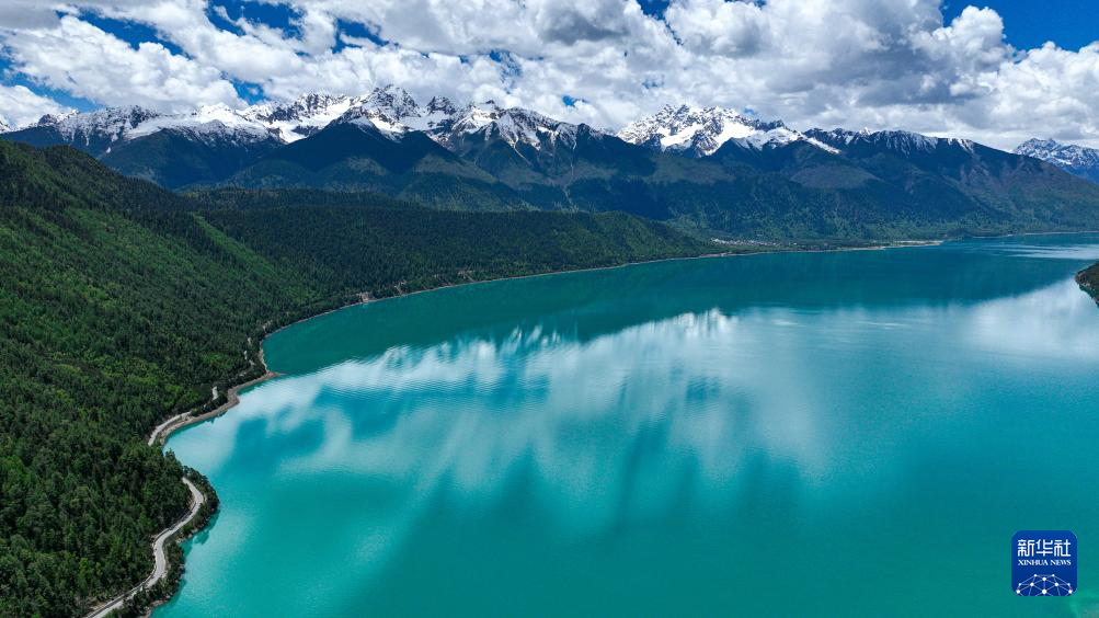 雪山環(huán)抱的巴松措(5月28日攝,無人機(jī)照片)。新華社記者 晉美多吉 攝