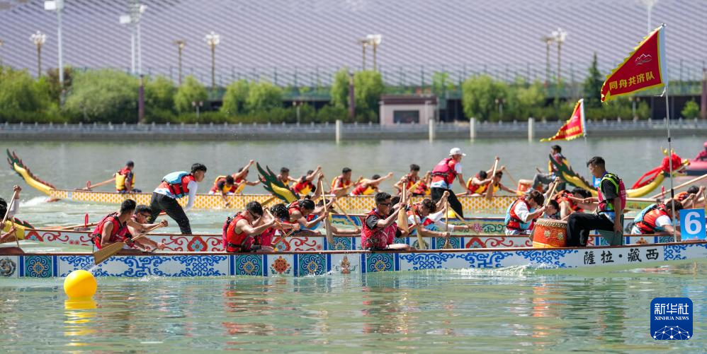 5月31日,參賽隊伍在龍舟比賽中。新華社記者 晉美多吉 攝