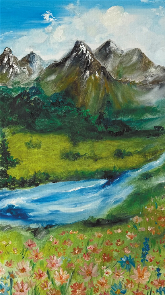 澤巴珍油畫作品《格?;ㄔ浮贰?/p>