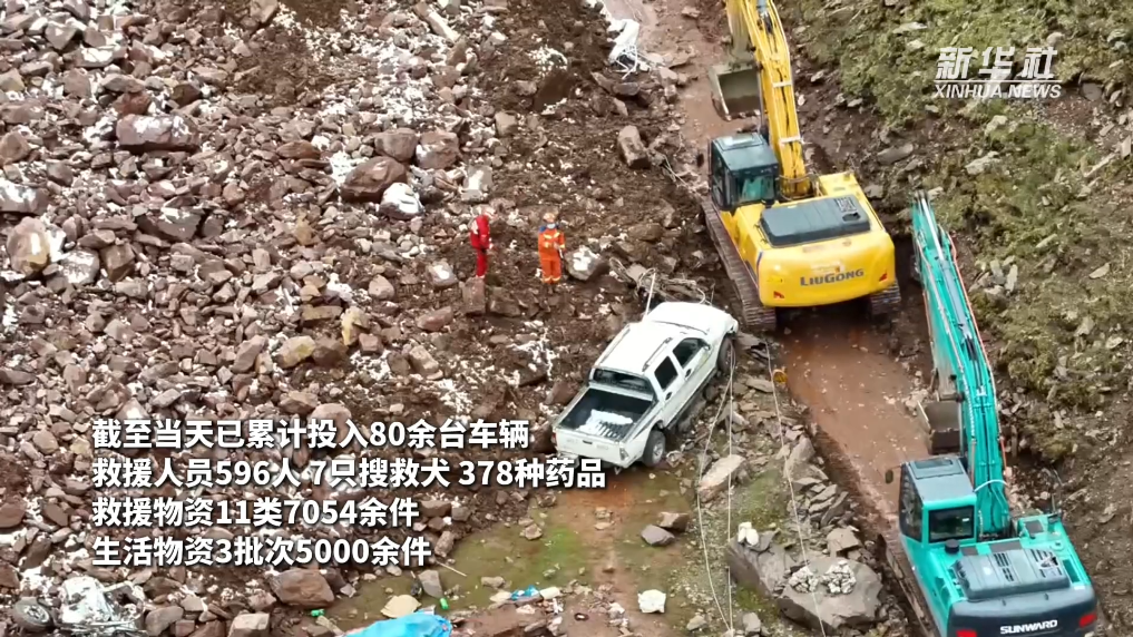 事件發(fā)生后,各方救援力量趕赴現(xiàn)場(chǎng),開展救援工作。6月5日上午6時(shí),搜救挖掘繼續(xù)開展,截至5日18時(shí)已累計(jì)投入80余臺(tái)車輛、596人、7只搜救犬、378種藥品、救援物資11類7054余件、生活物資3批次5000余件。清理堆積體約5000方,挖掘出2輛汽車,搜尋到3名遇難者遺體,未搜尋到7名失聯(lián)人員。