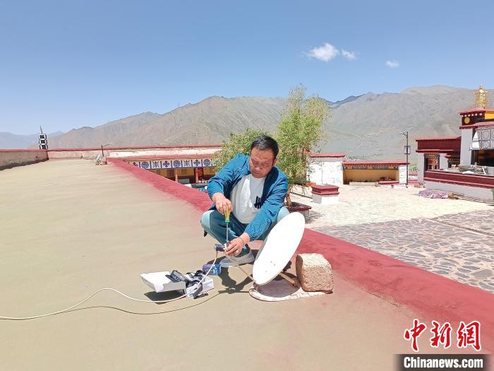 圖為工作人員正在安裝直播衛(wèi)星戶戶通設(shè)備。達(dá)孜區(qū)委宣傳部供圖