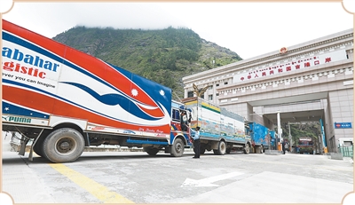 口岸兩側(cè),總能看到大貨車來來往往。貨車車身和駕駛室被司機精心裝扮,有的車廂上還掛著中尼兩國國旗,用彩色涂料寫著“中尼友誼”“好兄弟”等字樣。