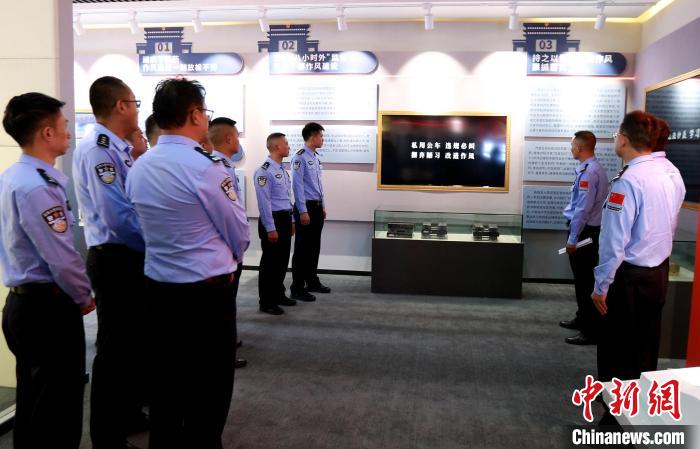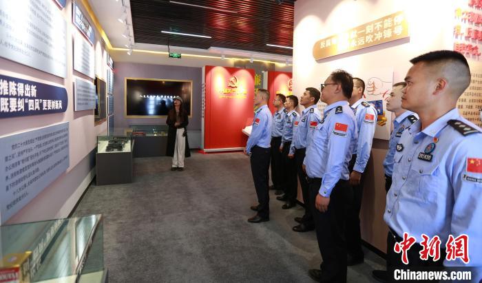 圖為參觀民警正在認(rèn)真聆聽講解員解說。肖富貴 攝