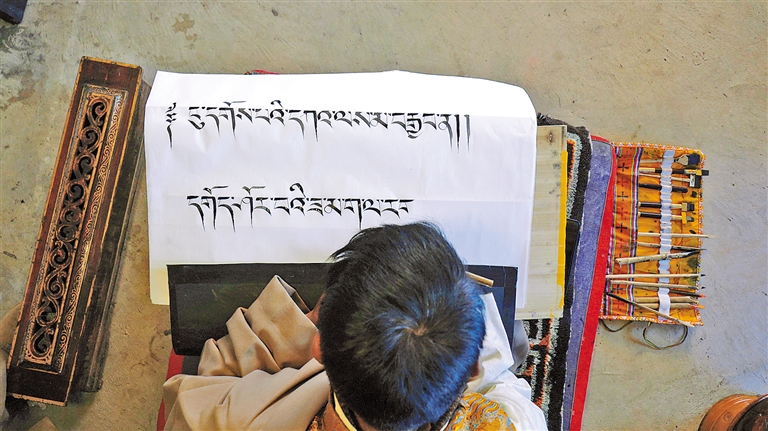 索朗多布杰介紹說,2008年,藏文書法經(jīng)國(guó)務(wù)院批準(zhǔn)列入第二批國(guó)家級(jí)非物質(zhì)文化遺產(chǎn)名錄;2014年,尼赤派書法被列入第四批國(guó)家級(jí)非物質(zhì)文化遺產(chǎn)名錄擴(kuò)展項(xiàng)目。