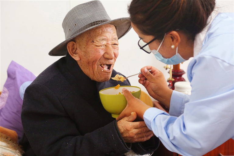 陽光穿過明凈的玻璃窗,溫柔地灑在80歲失明老人拉巴次仁手中的木碗上。他捧著熱騰騰的飯菜,幸福的笑容在臉上肆意綻放:“在這里,一日三餐有人端到跟前,臟衣服剛換下就有人洗凈送回,生病也不愁沒人管?!崩先搜哉Z間滿是對(duì)生活的感激。