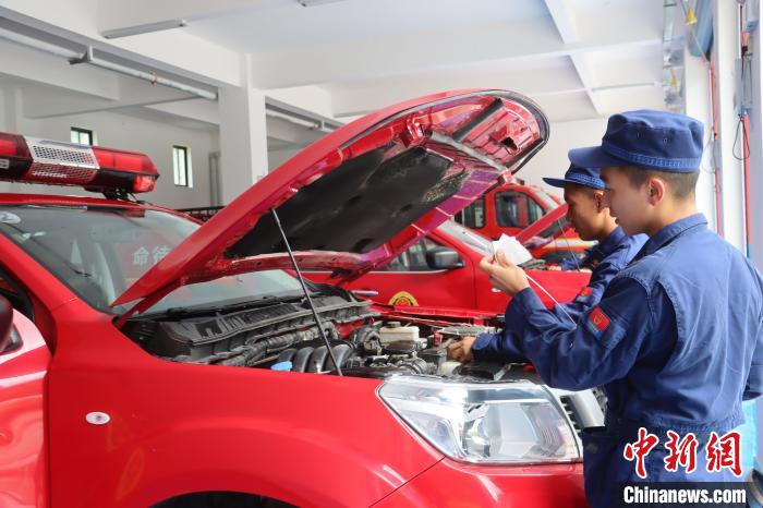圖為消防員正在保養(yǎng)車輛。西藏林芝市森林消防支隊(duì)供圖