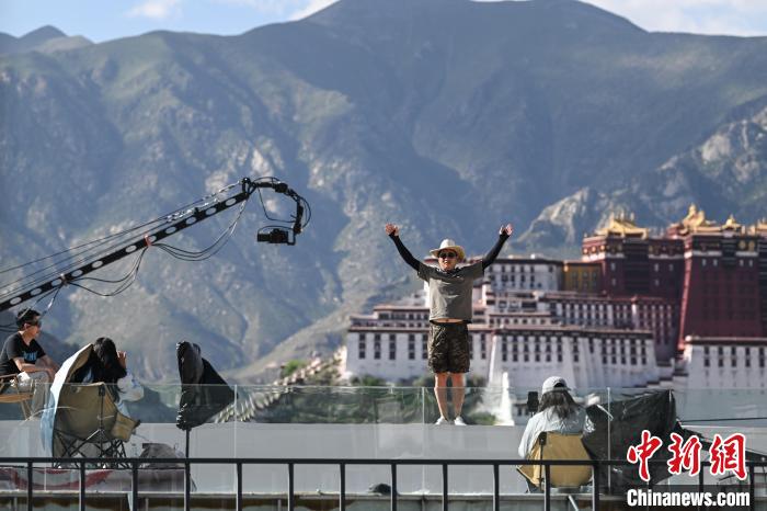 7月7日,游客在西藏拉薩市的一家景觀咖啡廳拍攝以布達(dá)拉宮為背景的 “旱地拔蔥” ?!昂档匕问[” 式的創(chuàng)意拍攝在拉薩掀起打卡熱潮。游客借助搖臂攝像機(jī),高高躍起,與雄偉的布達(dá)拉宮同框,拍出極具視覺(jué)沖擊力的“電影級(jí)”大片。據(jù)悉,拍攝“旱地拔蔥”的景觀咖啡廳從今年5月開(kāi)業(yè)以來(lái),平均每天接待游客300到500人次。中新社記者 貢嘎來(lái)松 攝