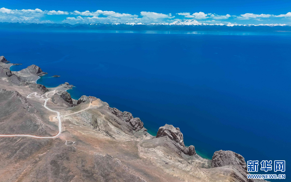 圖為夏日納木錯(7月7日攝,無人機照片)。新華網(wǎng)發(fā) 車宇軒 攝