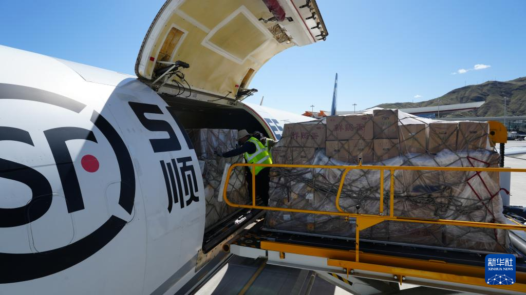 7月10日12點(diǎn)10分,一架載著西藏山南市瓊結(jié)縣小西紅柿、宏農(nóng)藏雞蛋,扎囊縣菜籽油、青稞等農(nóng)特產(chǎn)品的順豐全貨機(jī)從拉薩貢嘎國(guó)際機(jī)場(chǎng)起飛,前往湖北省鄂州市,這標(biāo)志著西藏首條貨機(jī)定期航線正式開通。一條連接西藏與華中地區(qū)的“空中金橋”由此貫通。