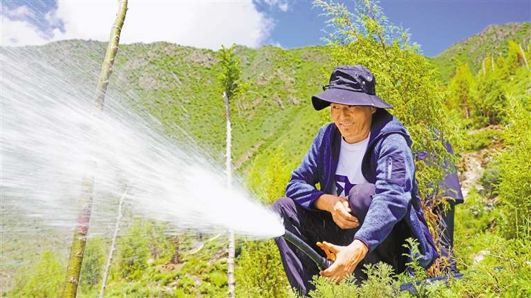 工程帶來的不僅是生態(tài)效益,更有可觀社會效益。項目實施以來,累計吸納3541人次墨竹籍群眾參與建設。從挖穴栽苗到日常養(yǎng)護,當地群眾成為生態(tài)建設主力軍。達瓦次仁感慨:“在家門口就業(yè),每日收入200多元,還能參與家鄉(xiāng)綠化,內心踏實又滿足?!?/p>