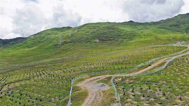 “歡迎來到南北山綠化工程現場!”指揮部工作人員頓珠迎面走來,熱情洋溢地說。他翻開隨身攜帶的工作日志,密密麻麻的記錄映入眼簾:“截至目前,我們已栽植161萬余株苗木,種植穴和網圍欄等基礎工程全部完工。”順著他的指引望去,銀灰色的網圍欄在晨光中閃爍,如鋼鐵長城般蜿蜒于群山。