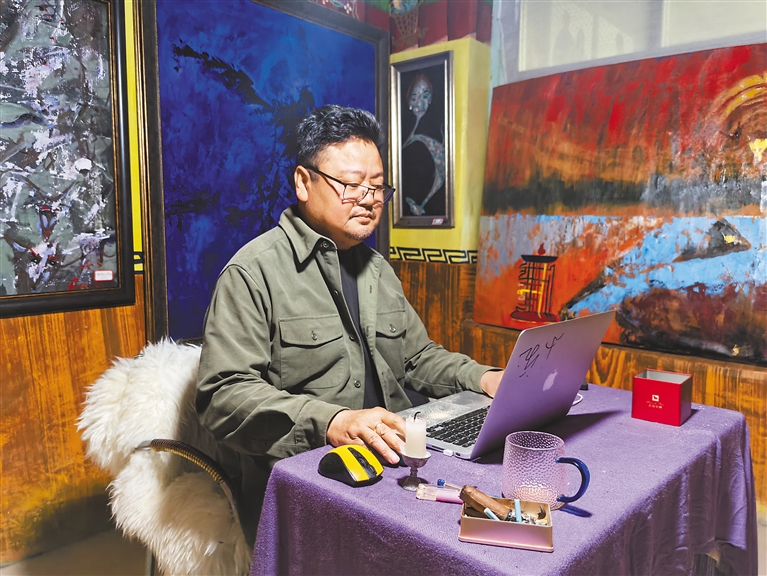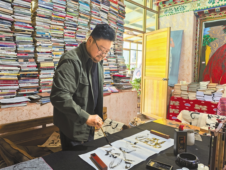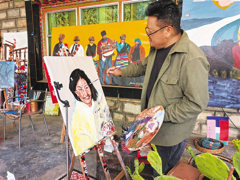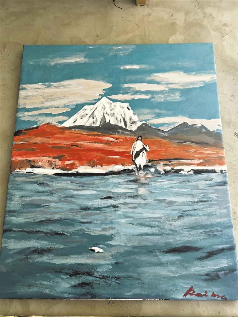 在絕望的深淵里,這片土地深沉的力量和藝術(shù)創(chuàng)作的本能召喚,讓他抓住了救贖的繩索。他用了漫長光陰,艱難地完成了這場精神的浴火涅槃:重新拾起寫詩的筆,鋪開作畫的紙,用文字和色彩,一步一個腳印地跋涉,終于走出了那場“淋了10多年的大雨”。他決然放下沉重的過往,以“白瑪次仁”之名擁抱新生,將一路的風(fēng)霜、藏地的壯美與故事,化作筆下的詩行與畫布上的色彩,在藝術(shù)的熔爐中淬煉出一個全新的自我。
