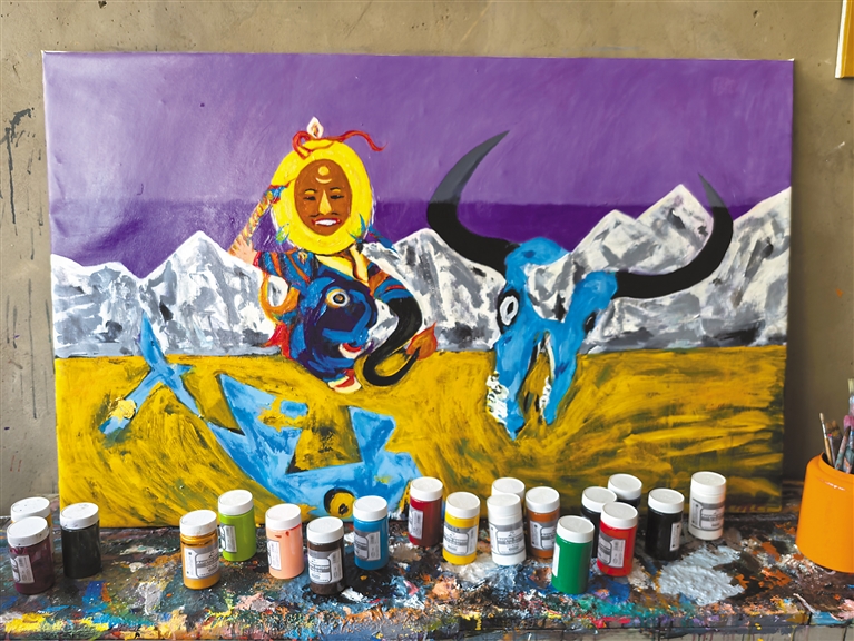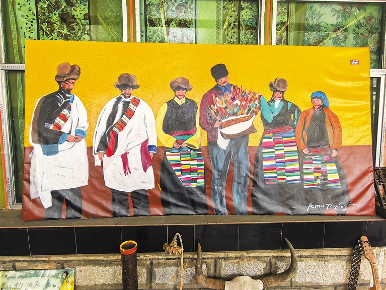 近年來,白瑪次仁背著他的畫作跑到拉脫維亞、西班牙、日本各地巡展?!拔鞑鼗蛘呶?,很榮幸能以這種方式被大家認(rèn)識和接受?!?/p>