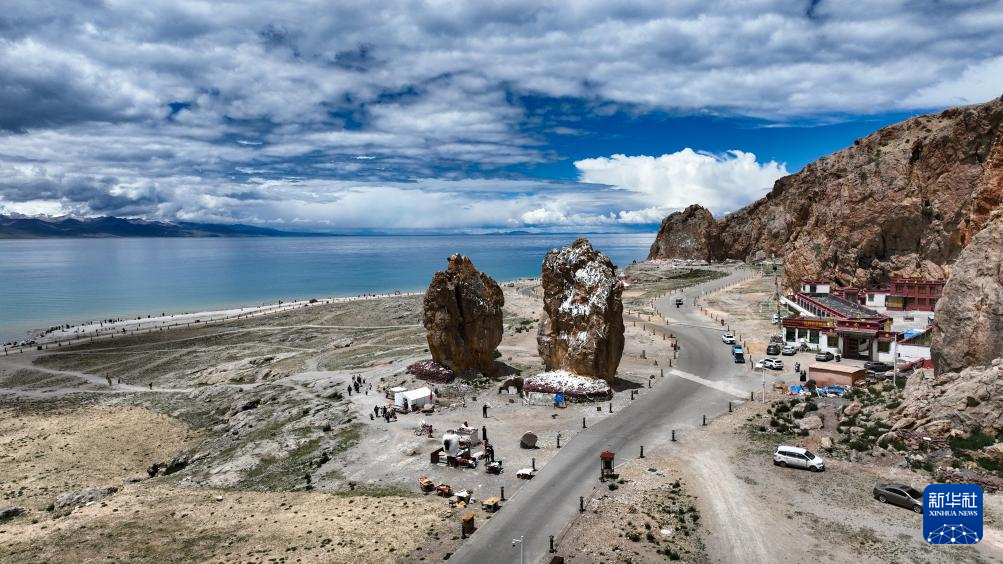 7月16日拍攝的納木錯扎西島景區(qū)風光(無人機照片)。新華社記者 晉美多吉 攝