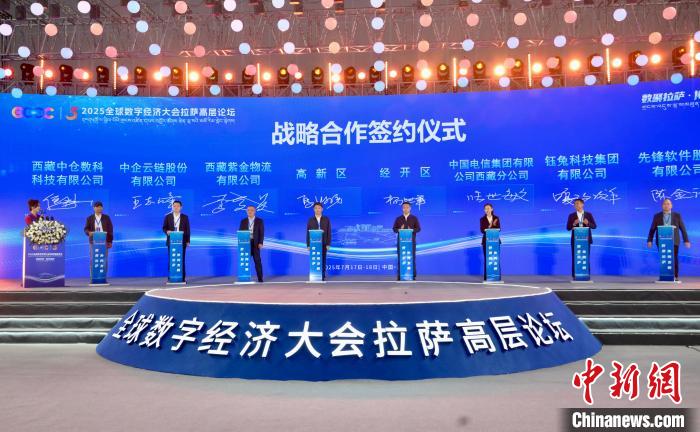 圖為2025全球數(shù)字經(jīng)濟(jì)大會(huì)拉薩高層論壇政企戰(zhàn)略合作簽約儀式現(xiàn)場(chǎng)?!〗懿?攝