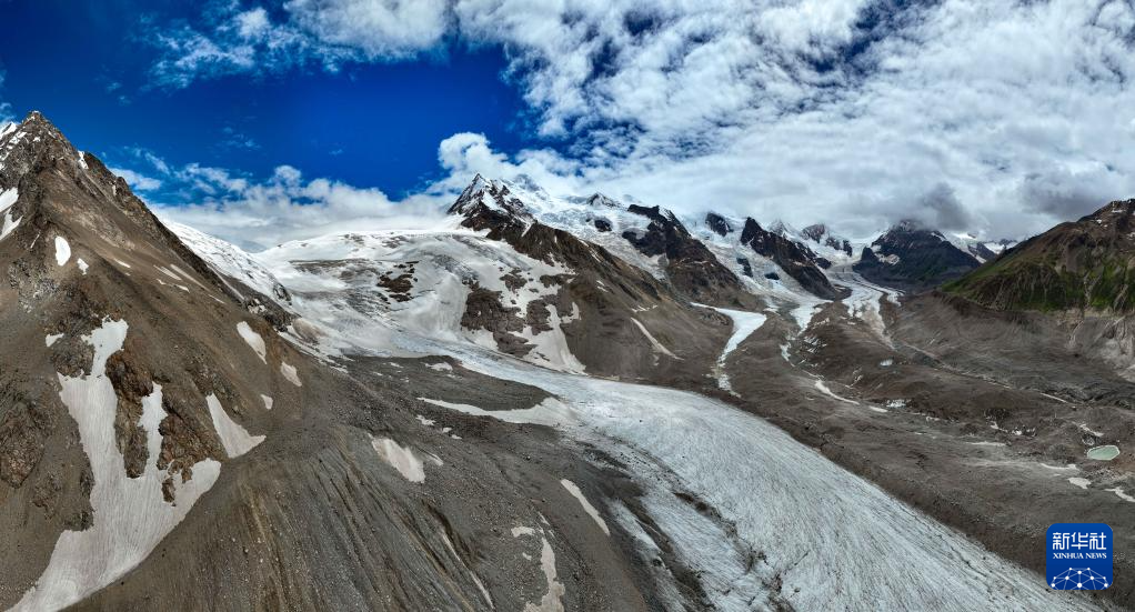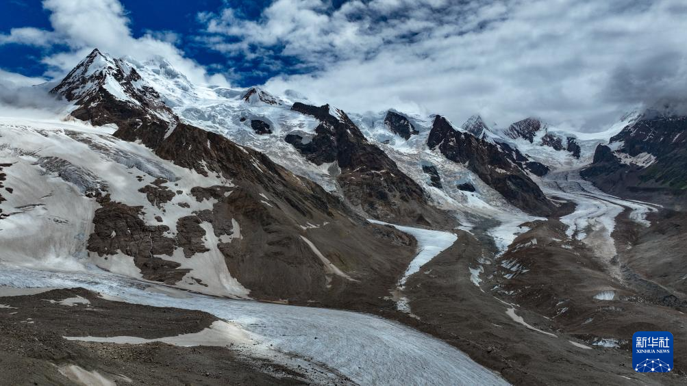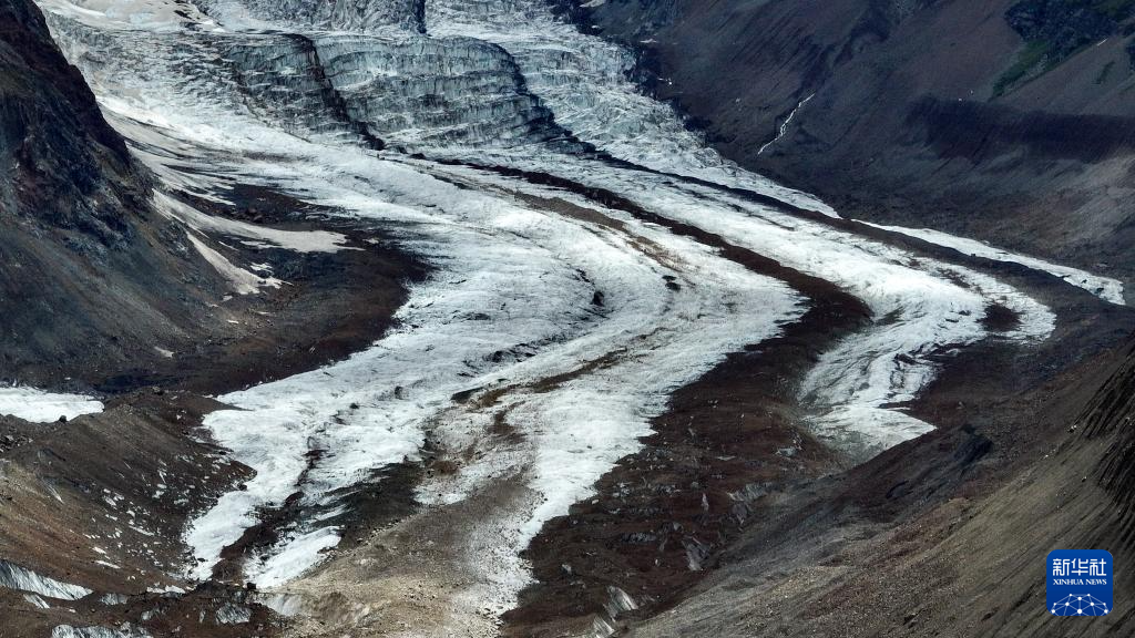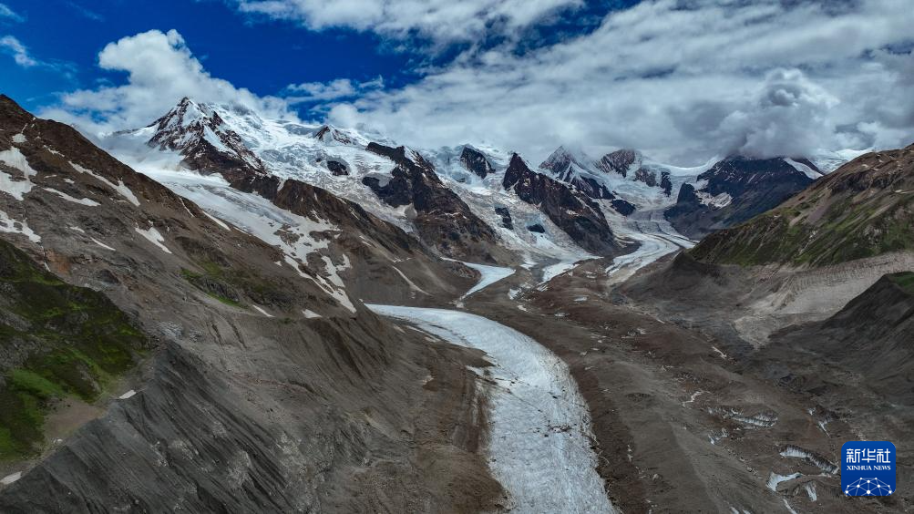 空中俯瞰祥格拉冰川(7月20日攝,無人機照片)。新華社記者 晉美多吉 攝