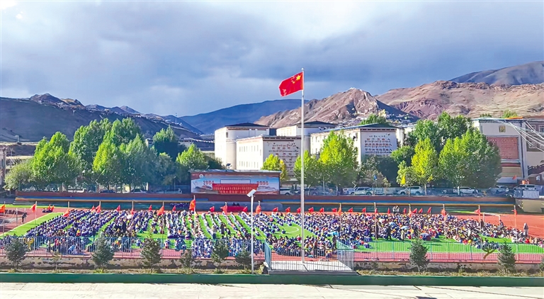 七十余載櫛風(fēng)沐雨,丁青縣小學(xué)早已舊貌換新顏。昔日的鐵皮房、泥土地,已被占地近3萬(wàn)平方米、建筑面積超1.2萬(wàn)平方米的現(xiàn)代化校園取代。寬敞明亮的教學(xué)樓、標(biāo)準(zhǔn)化的運(yùn)動(dòng)場(chǎng)、齊全的各類(lèi)功能教室,促進(jìn)了孩子們的全面發(fā)展。截至2024年9月,學(xué)校擁有學(xué)生2650余名,教學(xué)班級(jí)49個(gè)。一支136人的高素質(zhì)教師隊(duì)伍扎根于此,教書(shū)育人。