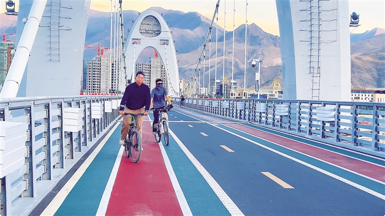 拉薩河畔的公園“綠色騎行帶”,已成為城市休閑健身的亮眼新地標(biāo)。這條綠色廊道沿河岸蜿蜒延伸,將沿線多個(gè)生態(tài)公園與地標(biāo)景點(diǎn)串聯(lián)成線,其中橫跨河面的“和美橋” 以現(xiàn)代藏式風(fēng)格的獨(dú)特設(shè)計(jì)格外吸睛,成為騎行愛好者爭(zhēng)相打卡的網(wǎng)紅地。