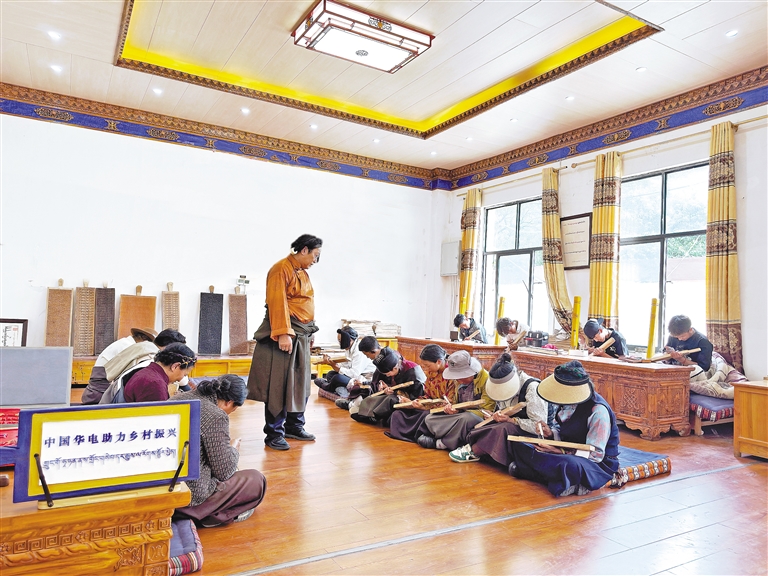發(fā)展的腳步并未停止。華電駐村黨員著力深化“黨建+村集體經(jīng)濟(jì)”發(fā)展機(jī)制,推動(dòng)產(chǎn)業(yè)提檔升級(jí)。一方面,全力打造“精品木刻”品牌。積極開發(fā)融合“古智藏文書法”等元素的木刻文創(chuàng)產(chǎn)品,將產(chǎn)品種類拓展至30余種,提升藝術(shù)價(jià)值和市場競爭力。另一方面,推動(dòng)產(chǎn)業(yè)融合。木松民族手工藝公司已從單一的木刻作坊,發(fā)展成為集工藝品雕刻、藏香制作、書法創(chuàng)作、技能培訓(xùn)、旅游于一體的綜合性致富產(chǎn)業(yè)聚集地,產(chǎn)業(yè)鏈條不斷延伸,村民的日子也越過越紅火。