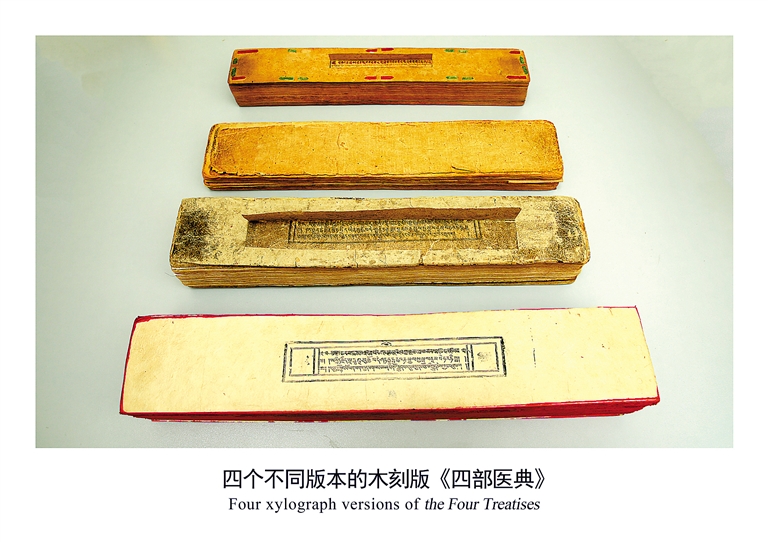 四個(gè)不同版本的木刻版《四部醫(yī)典》。自治區(qū)藏醫(yī)院文獻(xiàn)研究所提供